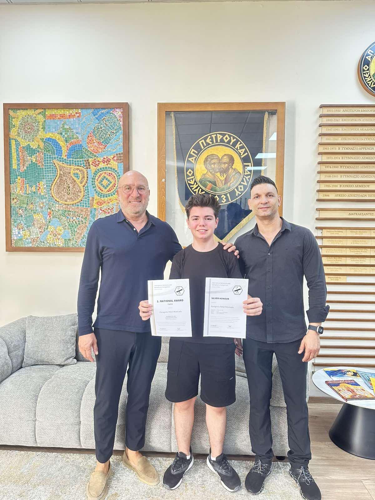 Θερμά συγχαρητήρια δόθηκαν σήμερα από τον διευθυντή μας κ. Δημήτρη Παπαμιλτιάδου και τον καθηγητή Φυσικής κ. Ρηγίνο Φεραίο, στον μαθητή του τμήματος Α22, Μελετιάδη Παναγιώτη Ραφαήλ.