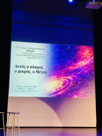 Ομάδα μαθητών της Γ’ λυκείου του σχολείου μας συμμετείχε, σήμερα, στο 3ο Συνέδριο Διαθεματικότητας - STEAM με θέμα «Αυτός ο κόσμος ο μικρός, ο Μέγας». Το συνέδριο διοργανώθηκε από το Λανίτειο Λύκειο και ήταν υπό την αιγίδα του Αναπληρωτή Διευθυντή Μέσης Εκπαίδευσης Δρος Κουτσίδη. Μετά από ένα εισαγωγικό καλλιτεχνικό πρόγραμμα τα παιδιά είχαν την ευκαιρία να επισκεφθούν 19 περίπτερα με πειράματα και κατασκευές Φυσικής, Χημείας, Βιολογίας, Τεχνολογίας και Μαθηματικών.