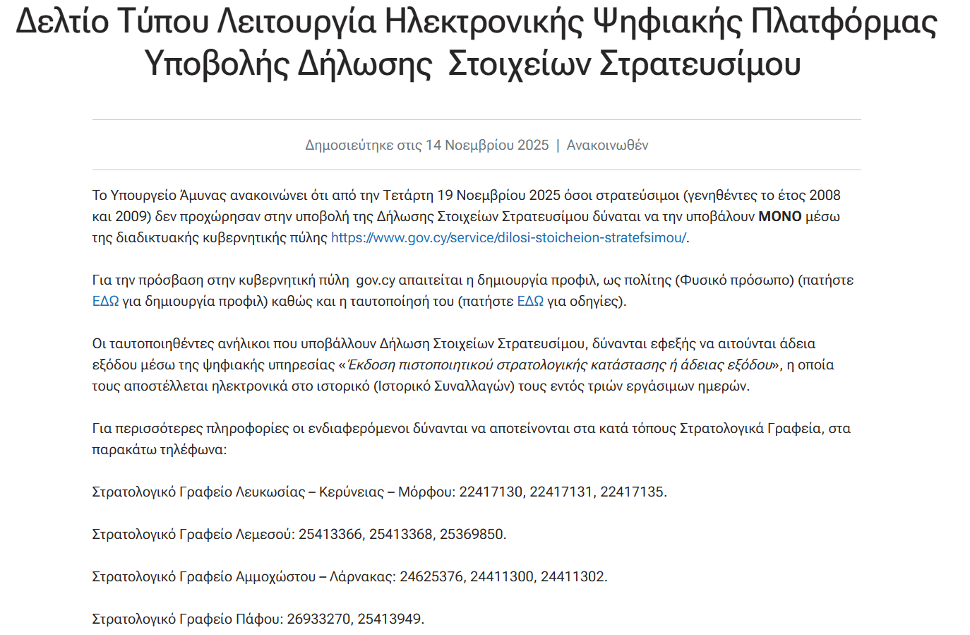 Υποβολή Δήλωσης Στοιχείων Στρατευσίμων |