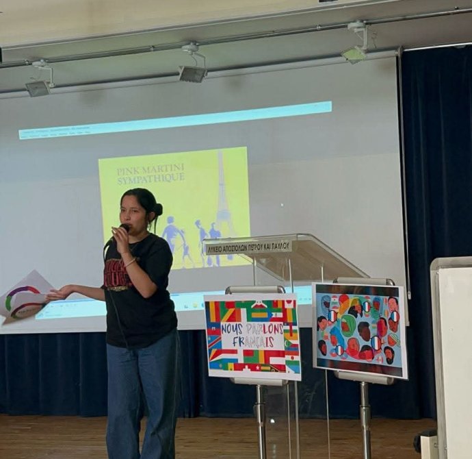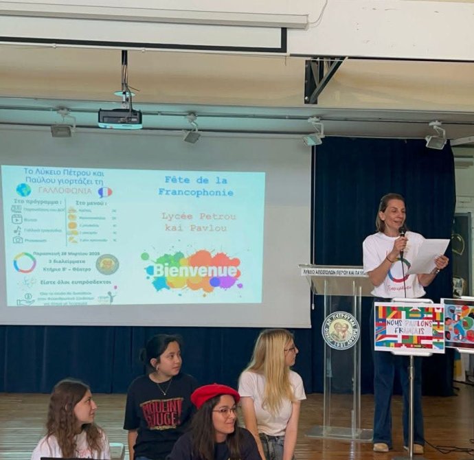 Σε ρυθμούς Γαλλοφωνίας διασκέδασαν σήμερα το πρωί μαθητές και καθηγητές στο Λύκειο Πέτρου και Παύλου, με υπέροχα γαλλικά τραγούδια, παρουσιάσεις, βιντεοκλίπ και γαλλικές λιχουδιές, προβάλλοντας τον πλούτο της γαλλικής γλώσσας και της γαλλόφωνης κουλτούρας.
