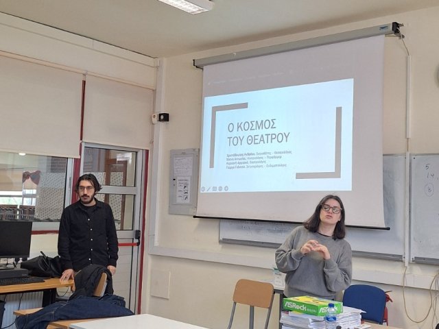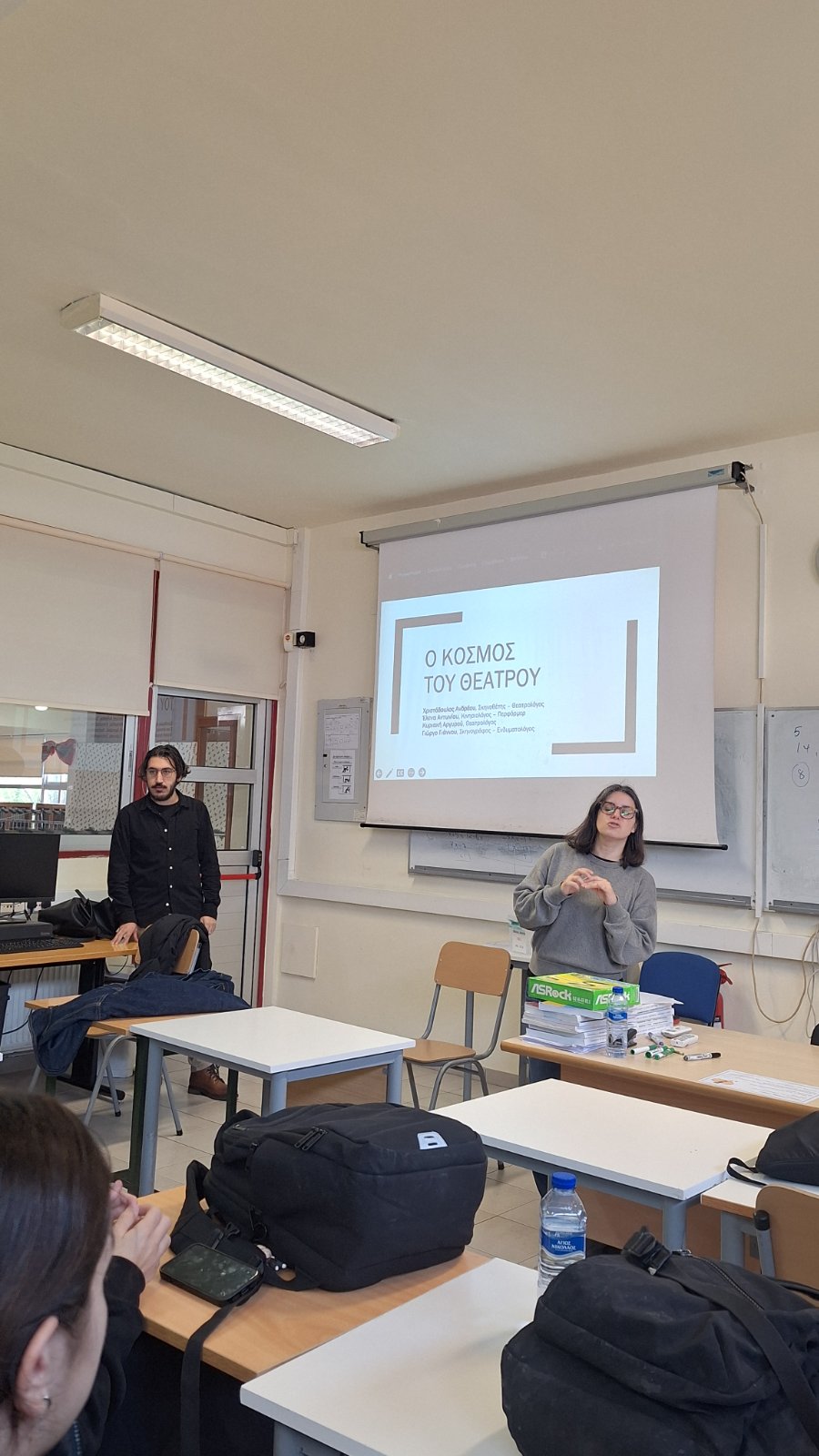 Στα Πλαίσια του διήμερου εργασίας, πραγματοποιήθηκε ενημέρωση για το επάγγελμα του σκηνοθέτη, σκηνογράφου, ενδυματολόγου και κινησιολόγου από τους: