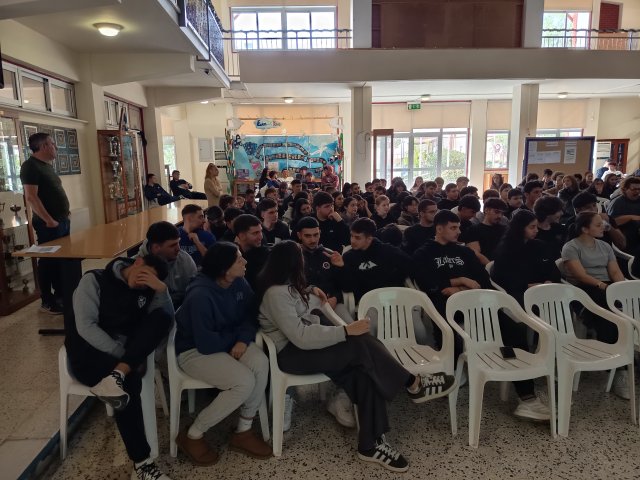 Ο ογκολόγος Δρ. Μαλάς ενημέρωσε τους μαθητές και τις μαθήτριες της Γ΄ Λυκείου για τους τύπους καρκίνου, τις μεθόδους θεραπείας και τη σημασία της έγκαιρης διάγνωσης. Η ομιλία του ήταν ουσιαστική, κατανοητή και ενέπνευσε τους μαθητές να βλέπουν την πρόληψη ως στάση ζωής.