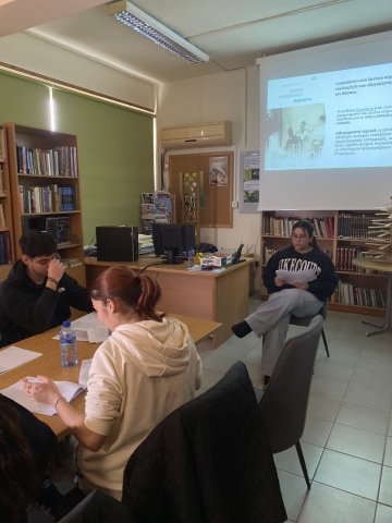 Ομάδα μαθητών/τριών του Σχολείου μας είχε την ευκαιρία να παρακολουθήσει παρουσίαση σχετική με την ξενάγηση ως εργαλείο εναλλακτικής μάθησης και να γνωρίσει την ένταξή της στην εκπαιδευτική διαδικασία μέσω του παραδείγματος του μαθήματος της Ιστορίας.