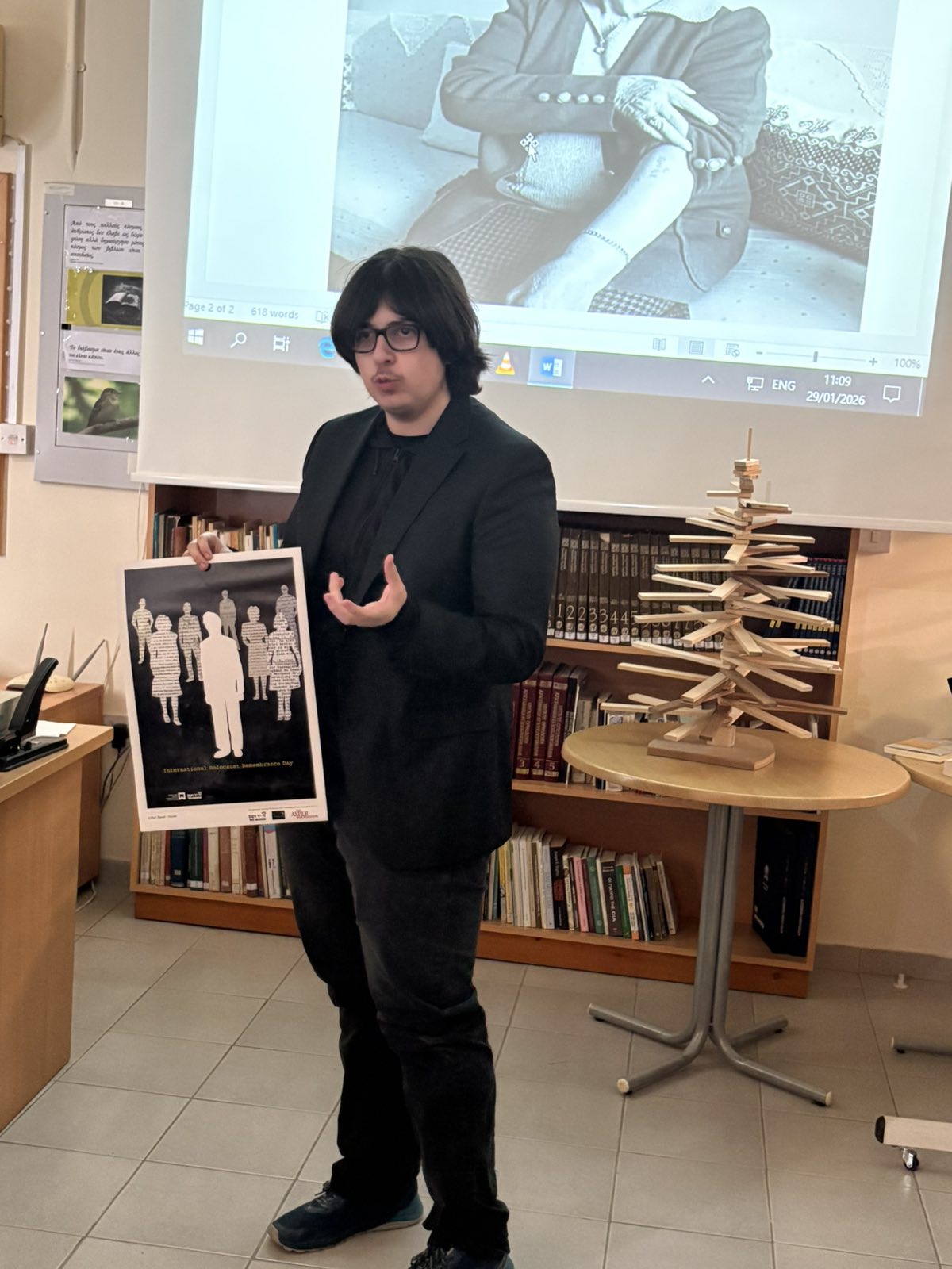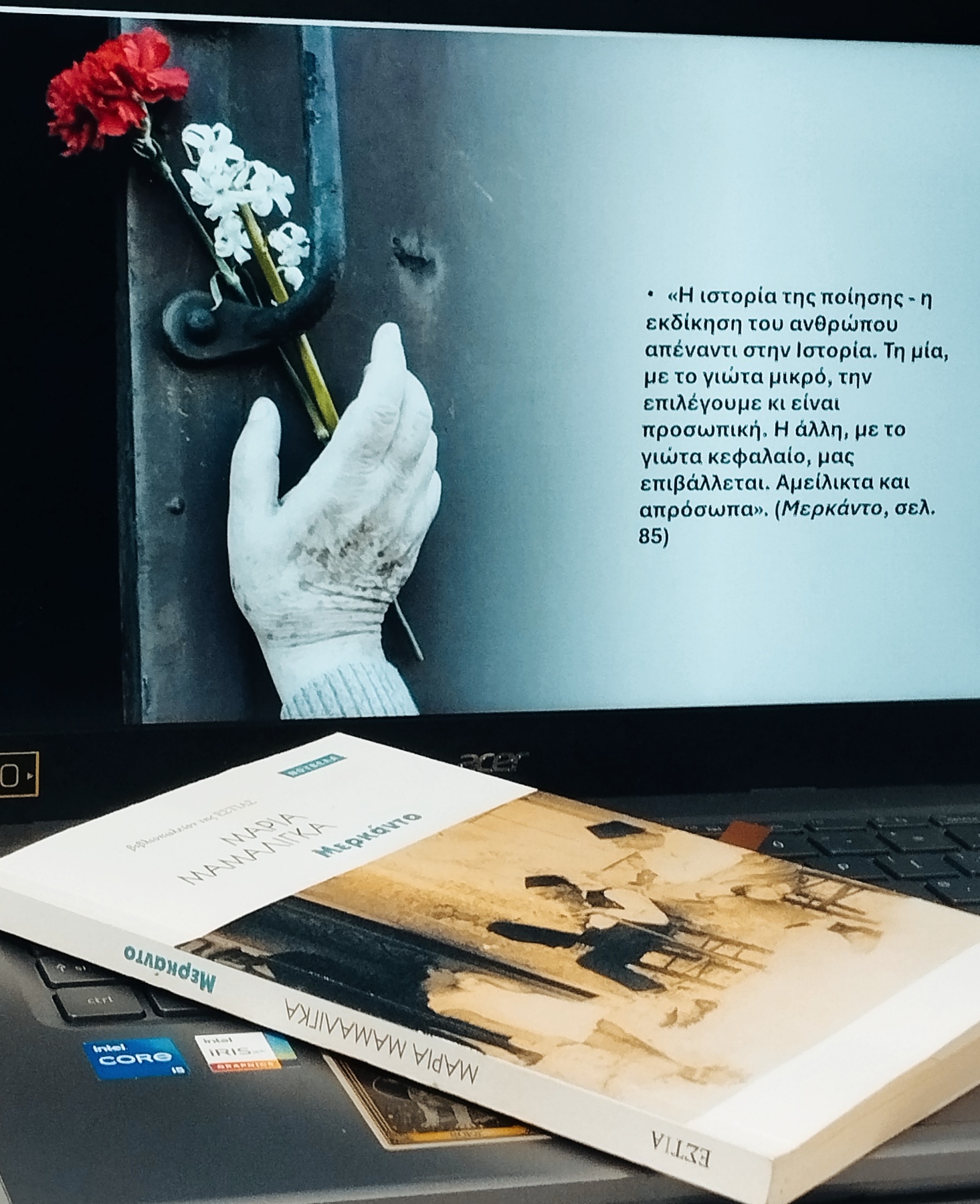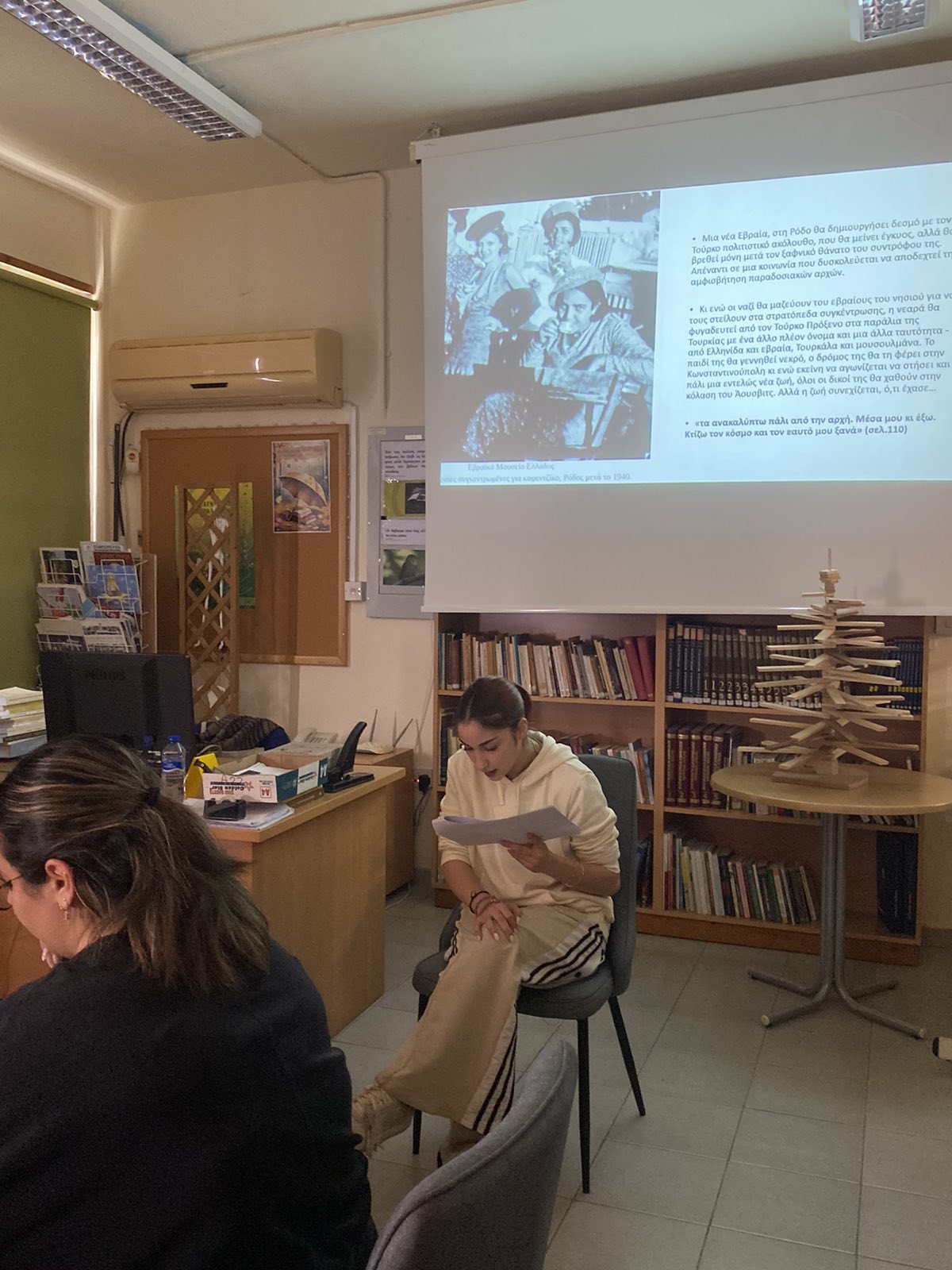 Στο πλαίσιο της Διεθνούς Ημέρας Μνήμης του Ολοκαυτώματος, η ομάδα της Βιβλιοθήκης του Λυκείου μας, συμπεριέλαβε ανάμεσα στις δράσεις της την παρουσίαση της νουβέλας "Μερκάντο" (εκδ. Εστία) της Μαρίας Μαμαλίγκα. Μέσα από τη μυθιστορηματική αφήγηση του βιβλίου παρακολουθήσαμε την πορεία της ζωής της δεκαεφτάχρονης Σεφαραδίτισσας Εβραίας της Ρόδου, φωτίσαμε άγνωστες πτυχές της ιστορίας του νησιού, γνωρίσαμε τους "Ροδεσλί " και μιλήσαμε για τη μακραίωνη ιστορία των ελληνικών εβραικών κοινοτήτων.