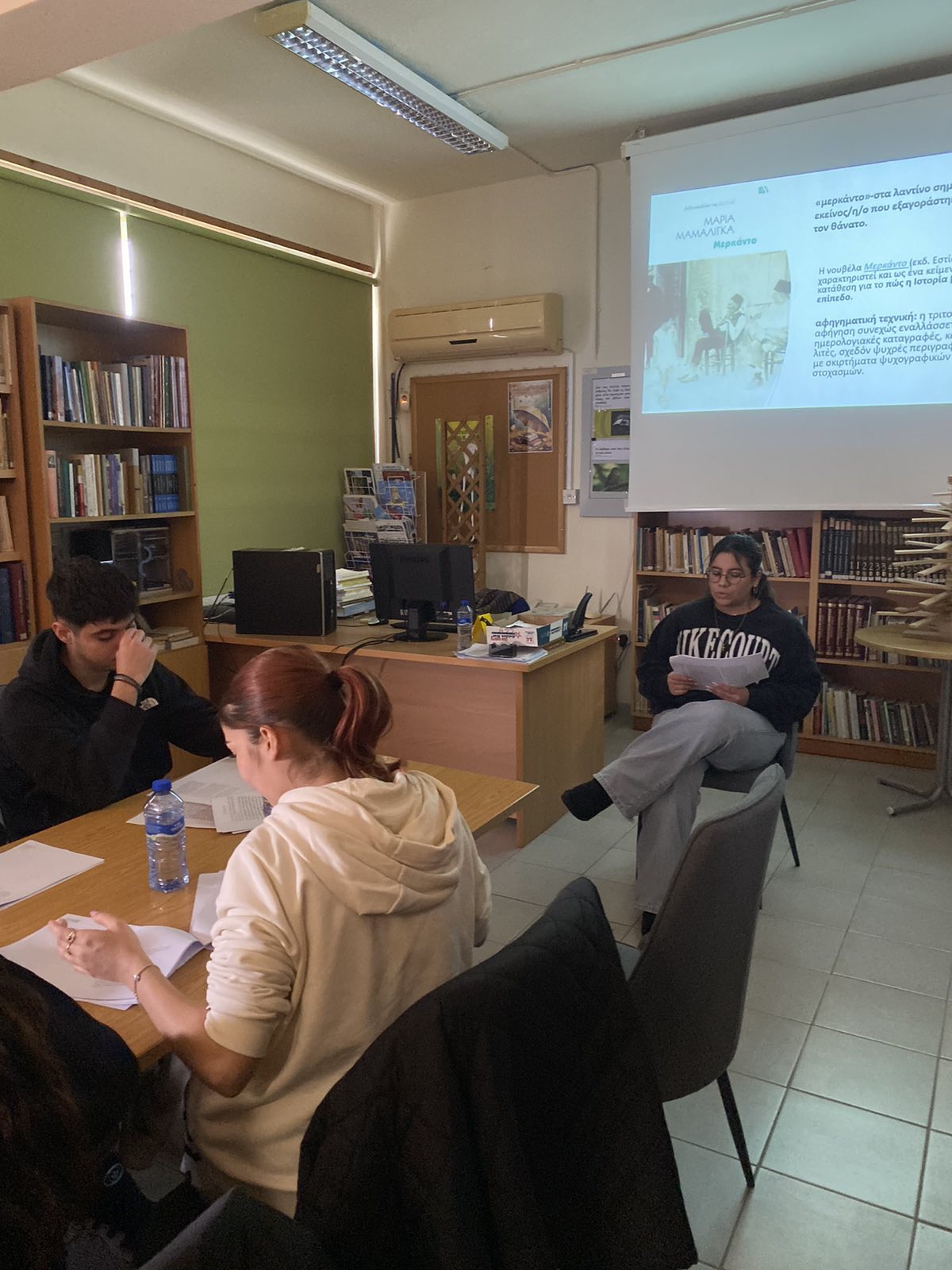 Δημιουργική γραφή στο πλαίσιο των δράσεων της βιβλιοθήκης για το μήνα Νοέμβριο. Είχαμε τη χαρά να φιλοξενήσουμε την αγαπημένη μας συγγραφέα Μαρία Α. Ιωάννου. Τα μέλη της Βιβλιοθήκης μας είχαν την ευκαιρία να γνωρίσουν και στη συνέχεια να θέσουν και οι ίδιοι σε εφαρμογή ενδιαφέρουσες και πρωτότυπες τεχνικές λογοτεχνικής γραφής.