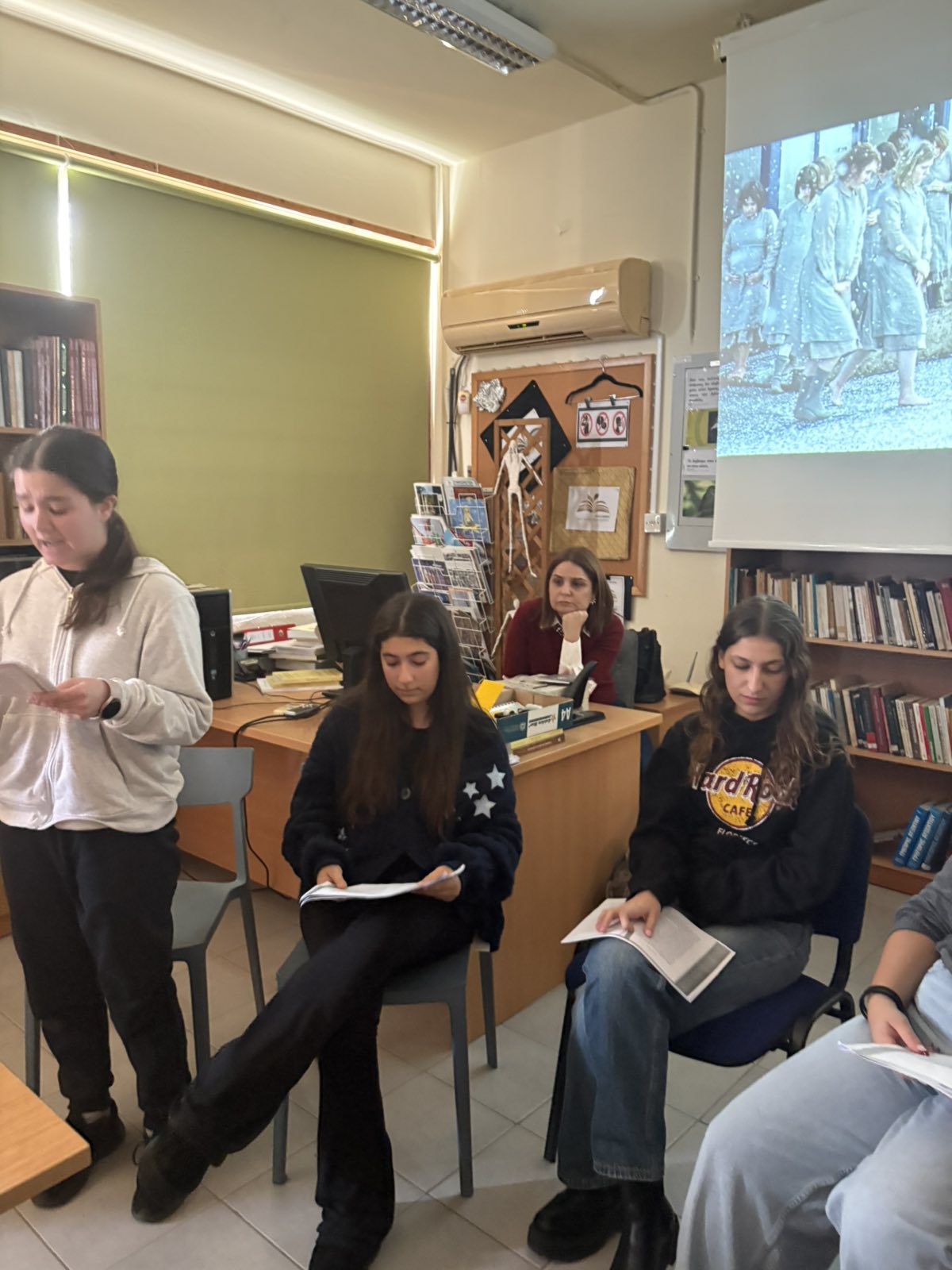Στις 22/ 11/ 25 πραγματοποιήθηκε η τέταρτη δράση της βιβλιοθήκης μας, όπου οι μαθητές και οι μαθήτριες είχαν την ευκαιρία να επισκεφθούν την τέταρτη διεθνή έκθεση βιβλίου που έλαβε χώρα στους Χαρουπόμυλους του Λανίτη, στη Λεμεσό. Τα παιδιά είχαν την ευκαιρία να περιηγηθούν στην έκθεση βιβλίου και στη συνέχεια να παρακολουθήσουν την παρουσίαση του καινούριου βιβλίου της Κωνσταντίας Σωτηρίου "Η κεφαλή του Τσάτσγουερθ" και τη συζήτηση που ακολούθησε με τη Μαρία Α. Ιωάννου.